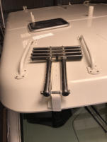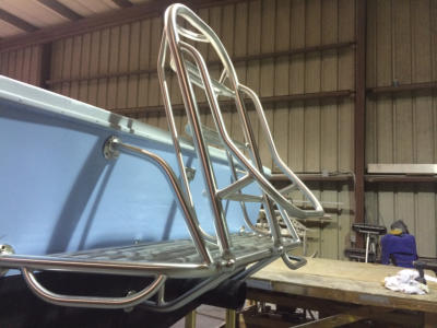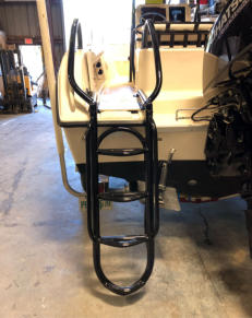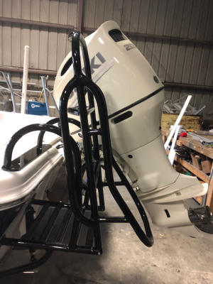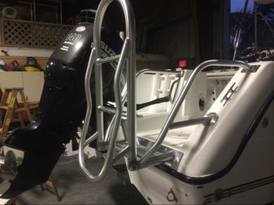 Swim ladders are constructed of the same schedule 40 marine grade aluminum as our other custom products. Perimeter of the swim platform is typically heavy duty 1 1/2 pipe (2” outside diameter). Our hinges are the same machined aluminum components found on our folding towers. With this combination, these platforms and ladders are meant to hold in excess of three hundred pounds, which is necessary for commercial and recreational divers. All platforms are custom to your boat. Length, width, and other factors such as working around such things power poles etc., are decided upon with the customer before fabrication begins to insure his/her needs are met.